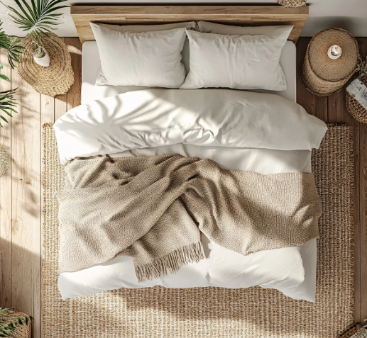 Bedroom Wind-Down (bedding, candles, lamps, rugs)